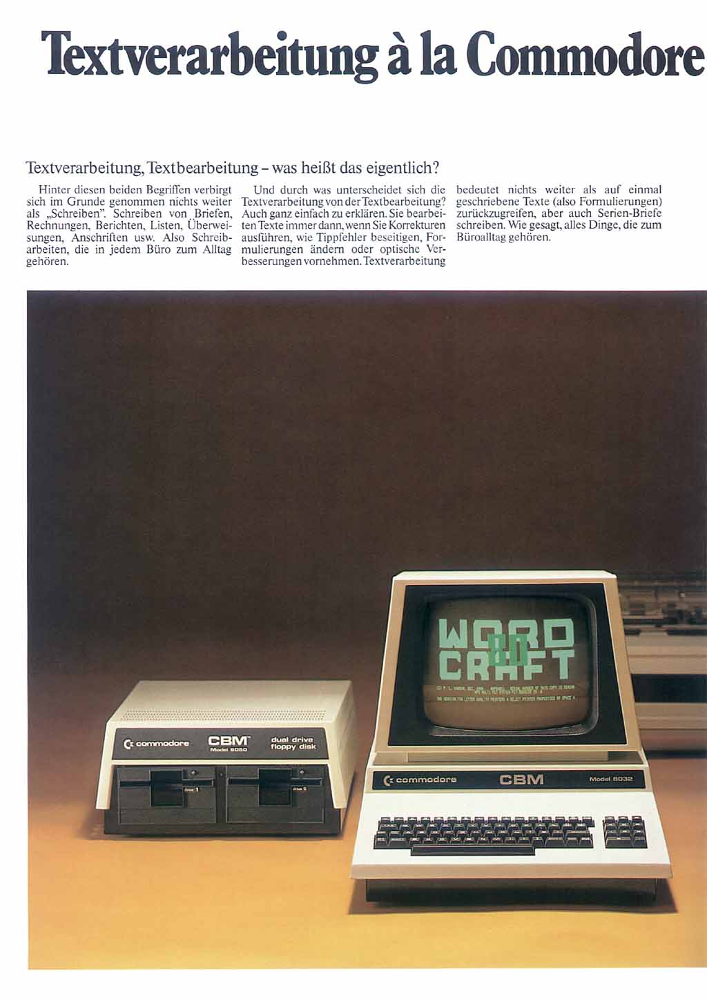 Ein Prospekt aus dem Jahre 1981, der die, schon sehr komfortable, Textverarbeitung "Wordcraft 80" aus dem Hause Commodore beschreibt.