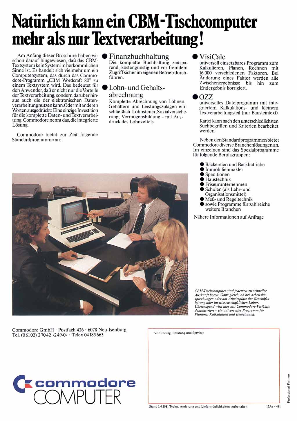 Ebenfalls aus dem Jahr 1981 stammt diese Werbung für die Commodore-Version der bekannten Tabellenkakulation "VisiCalc".
